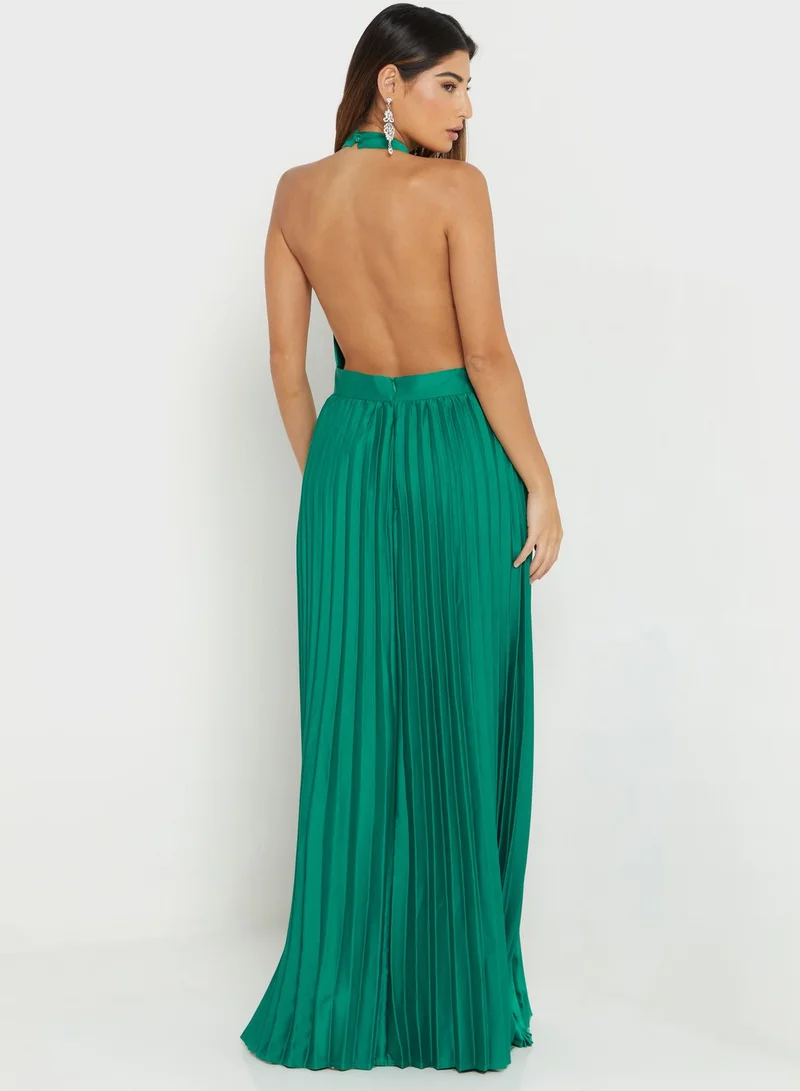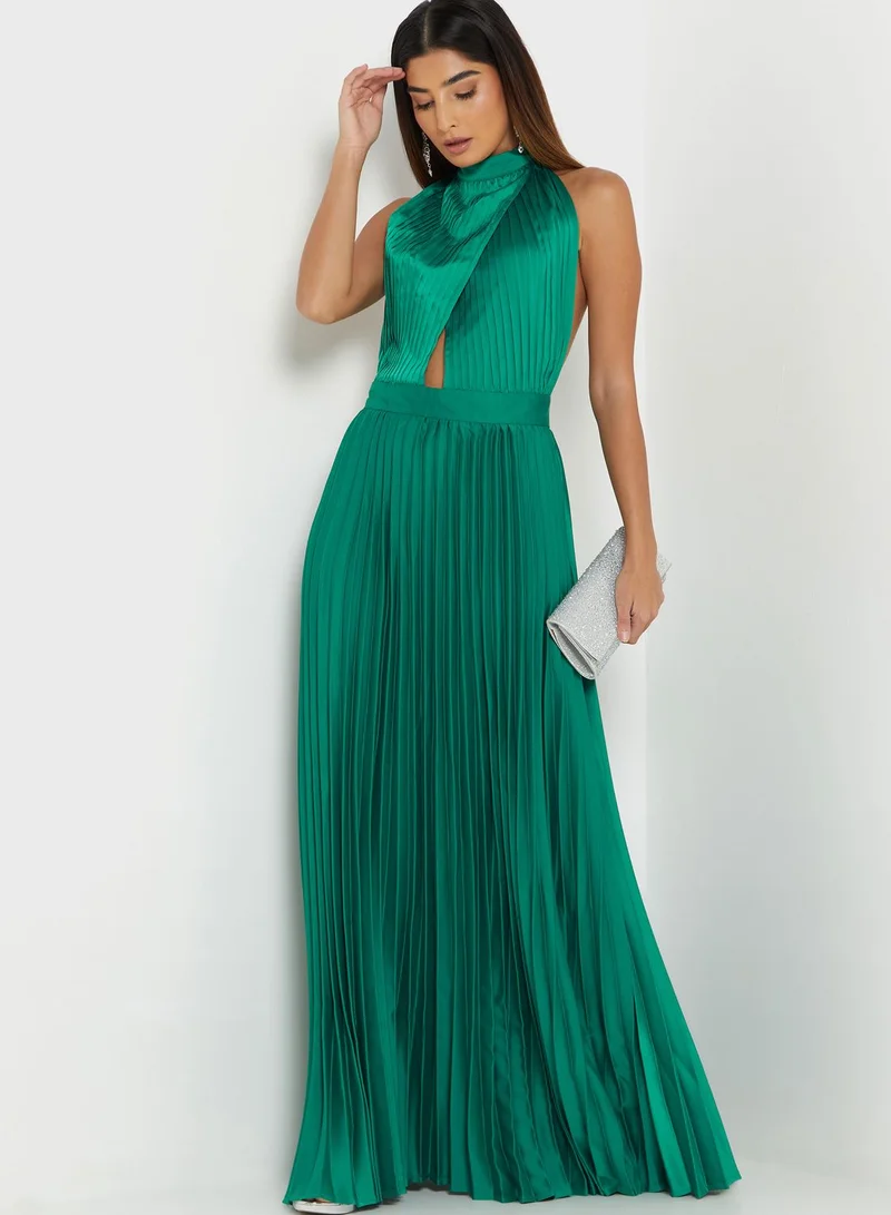 boohoo Halter Neck Cut Out Detail Pleated Dress