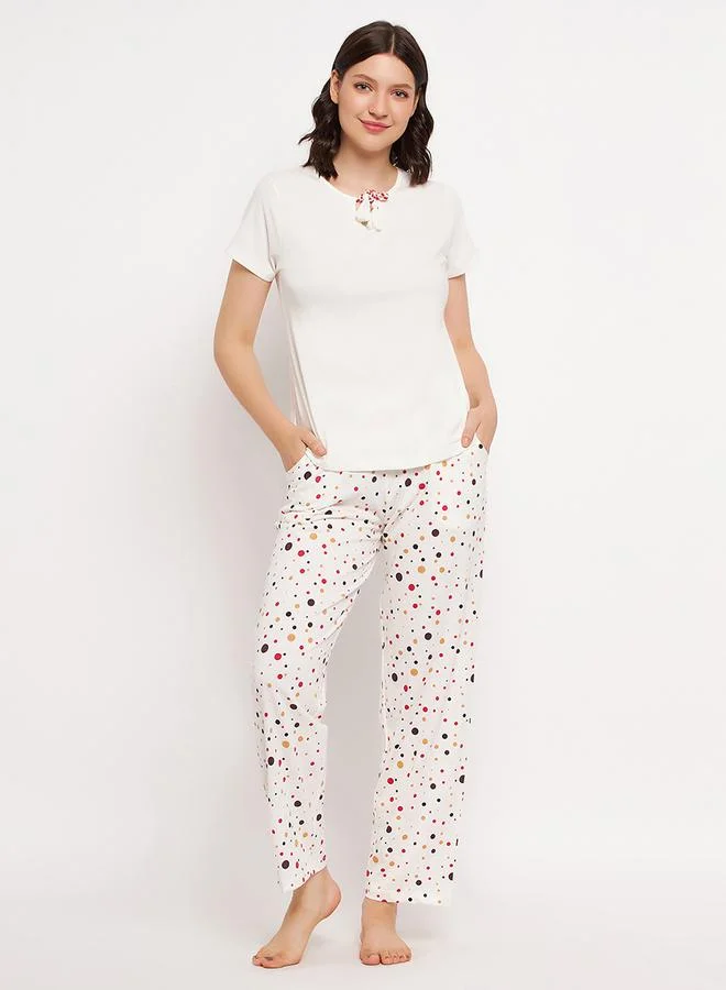 Clovia Cotton Basic Top & Spot Print Pyjama Set by Styli