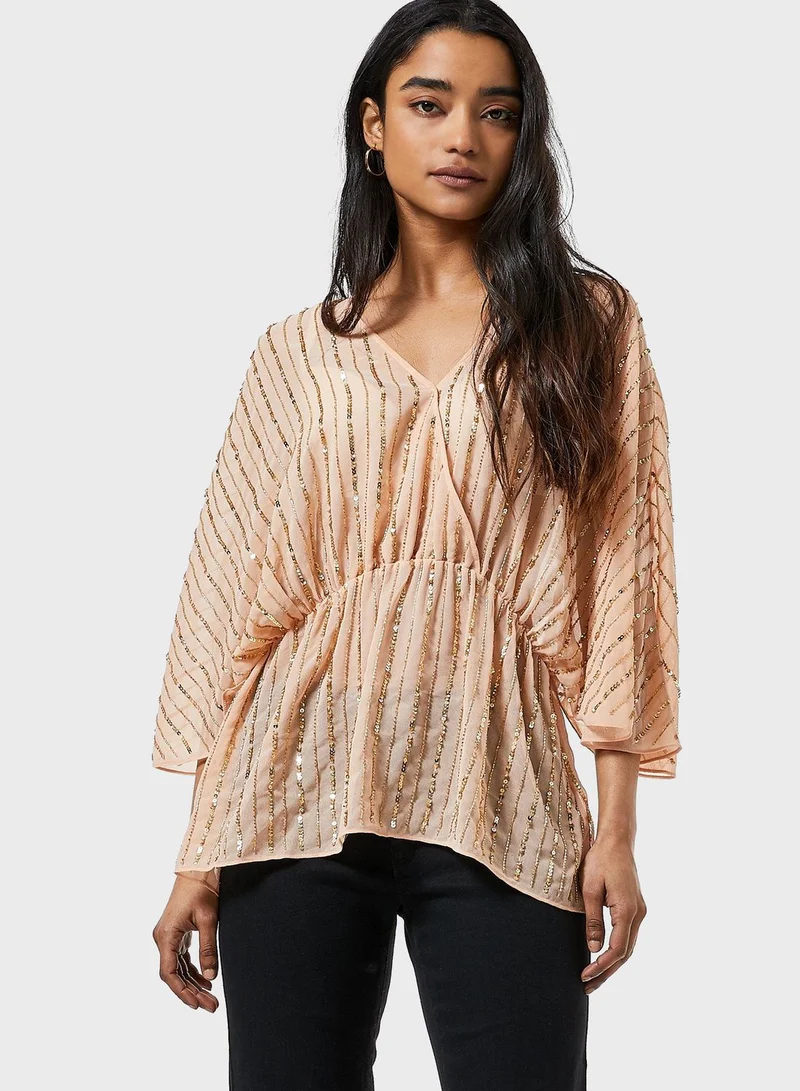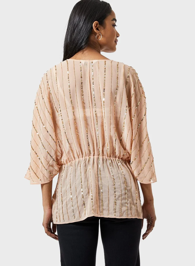 Sequin Detail Batwing Sleeve Top