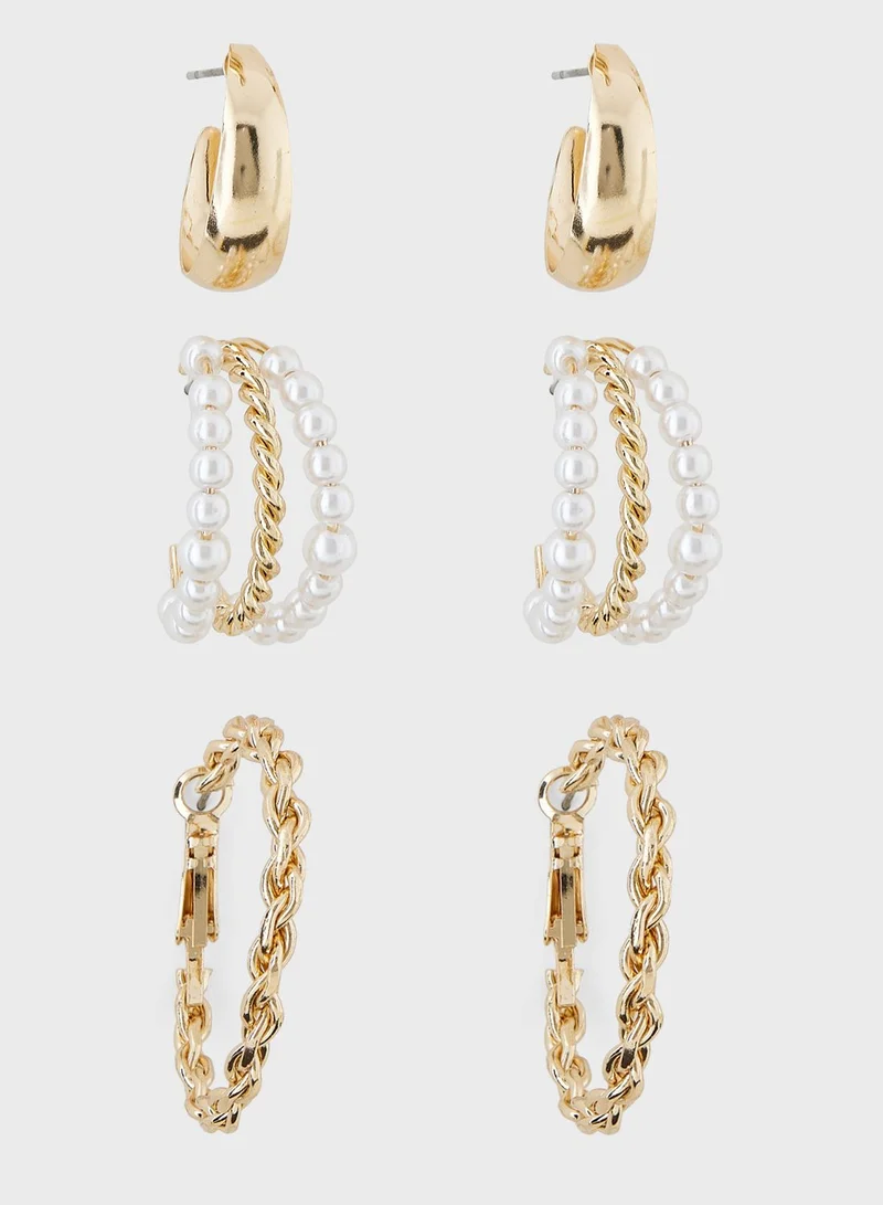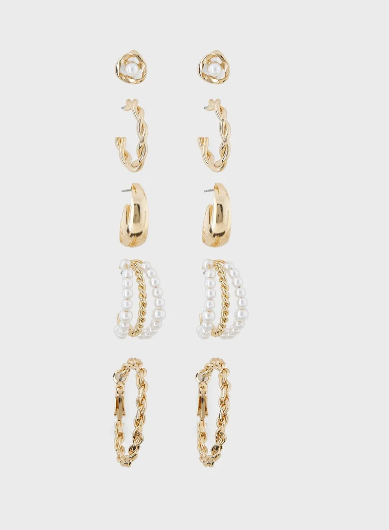 5 Pack Mix Pearl Hoop Earrings Set