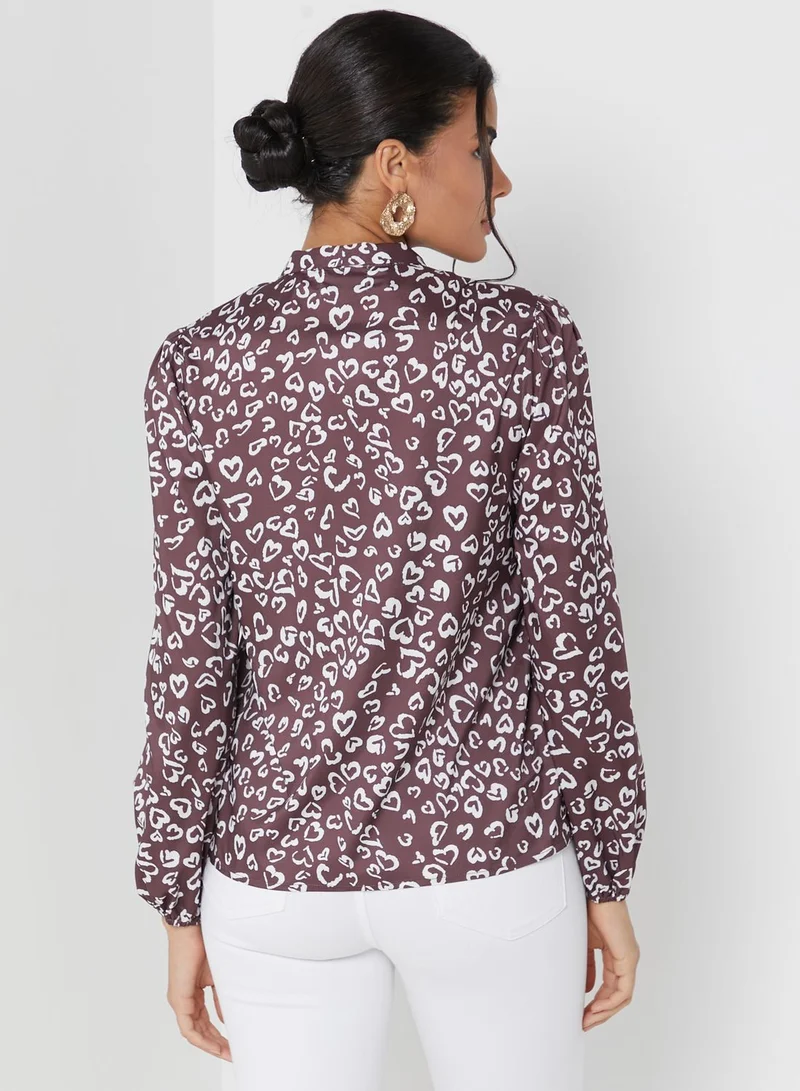 Printed Tie Detail Top