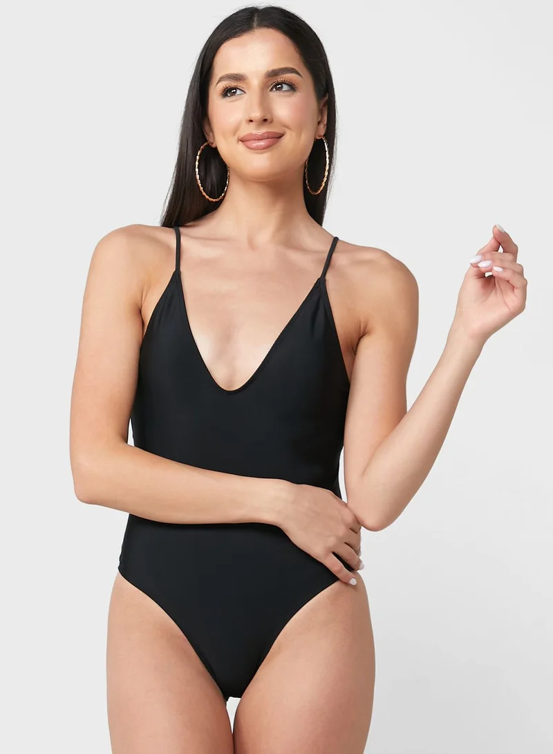 ELLA Solid Swimsuit With Tie Back Detail