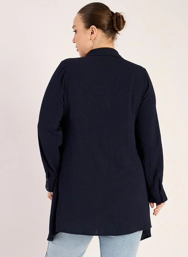 Elevate your style with our Navy Blue Plus Size Shirt. Long sleeves and a flattering fit for confident everyday wear.