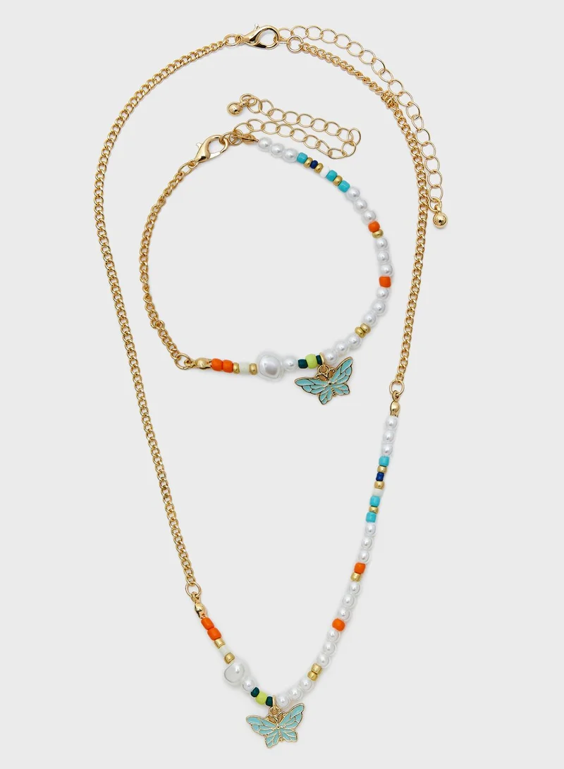 Butterfly Pendant Necklace & Bracelet Set