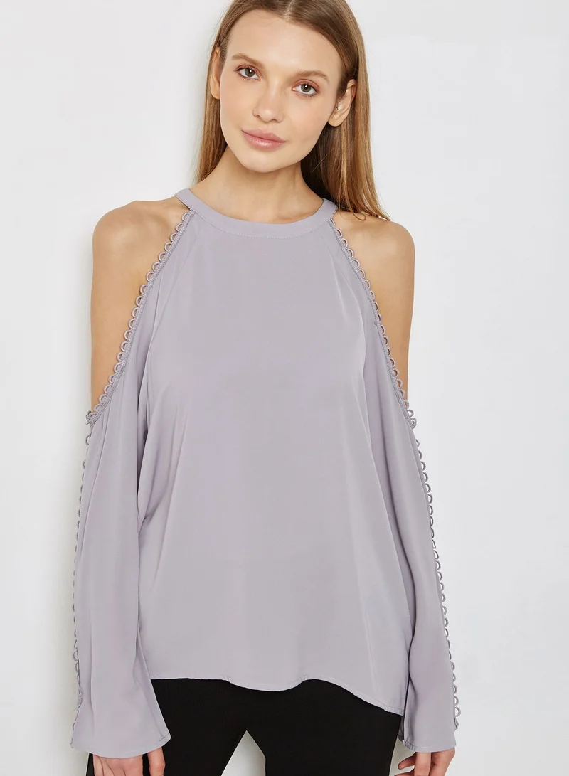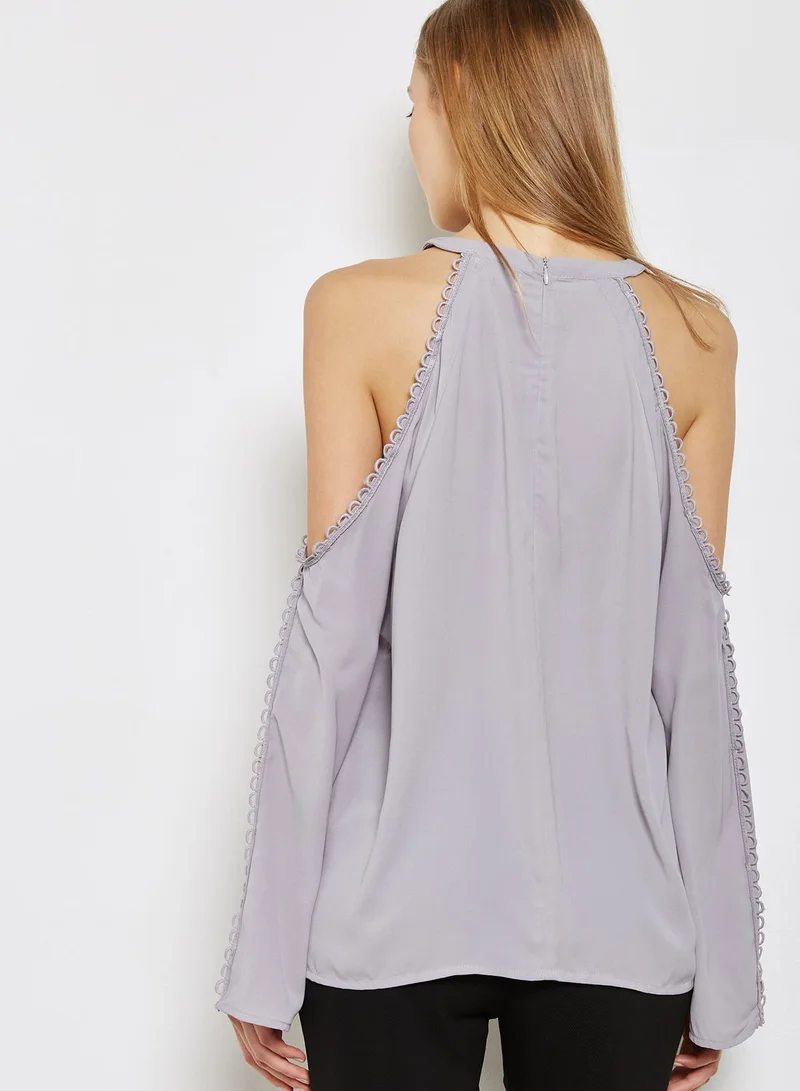 Lace Trim Cold Shoulder Top