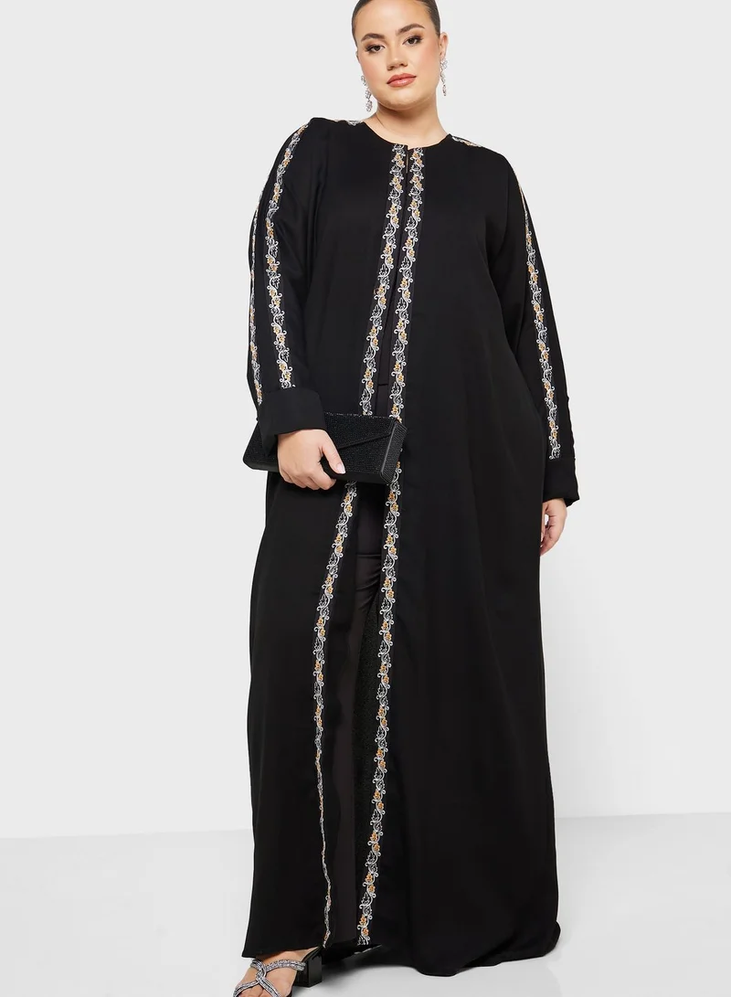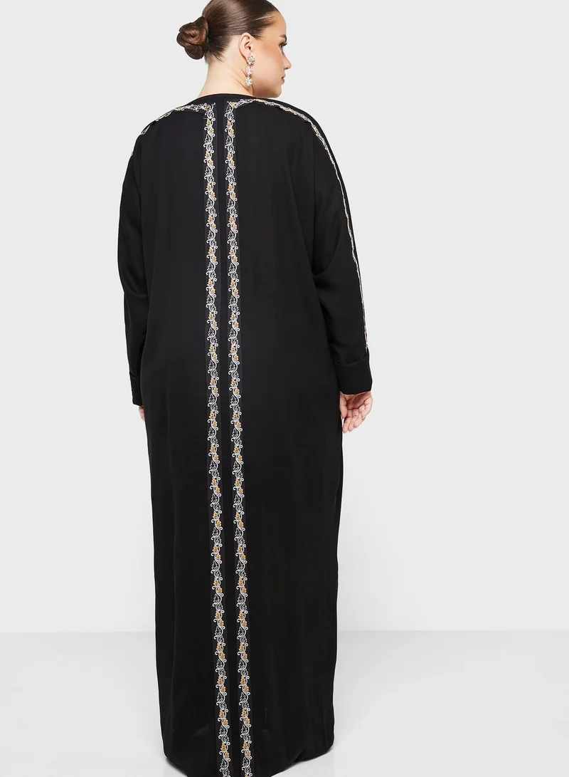 Elegant design details make this abaya into a lovely choice for special occasions.