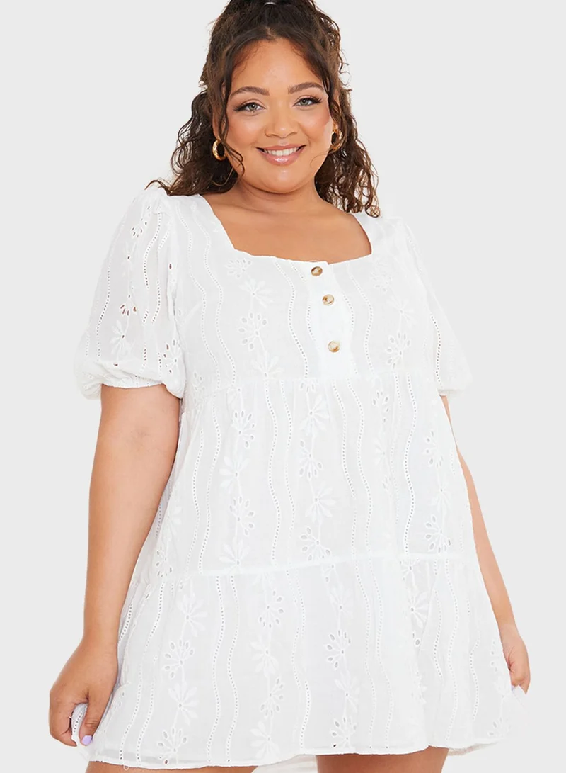 In The Style Curve Broderie Button Down Tier Dress