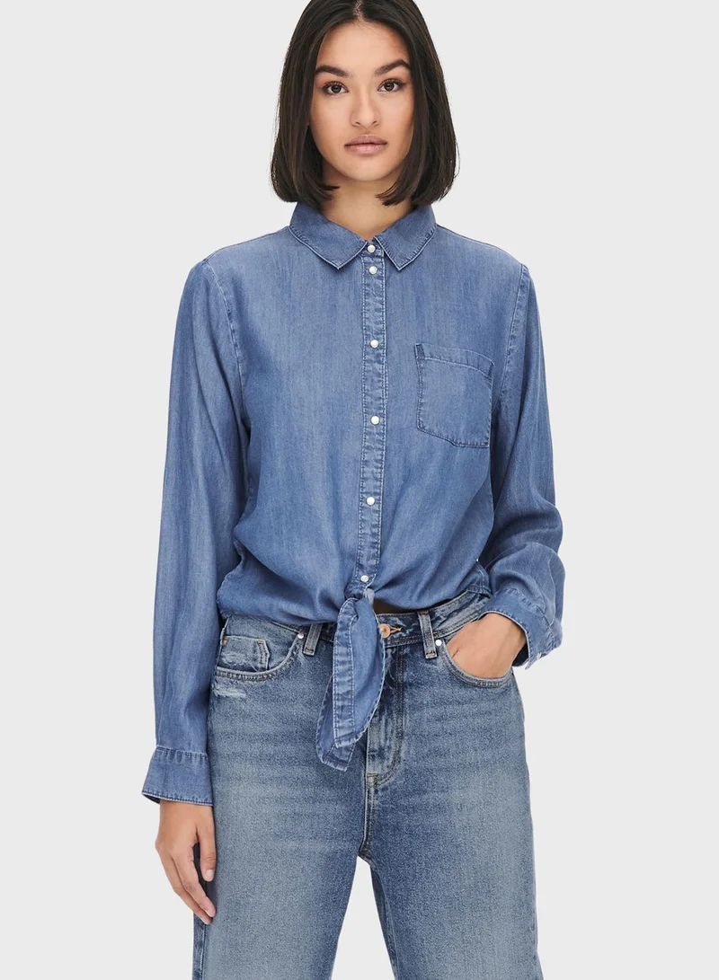 Jacqueline de Yong Knot Pocket Detail Denim Shirt