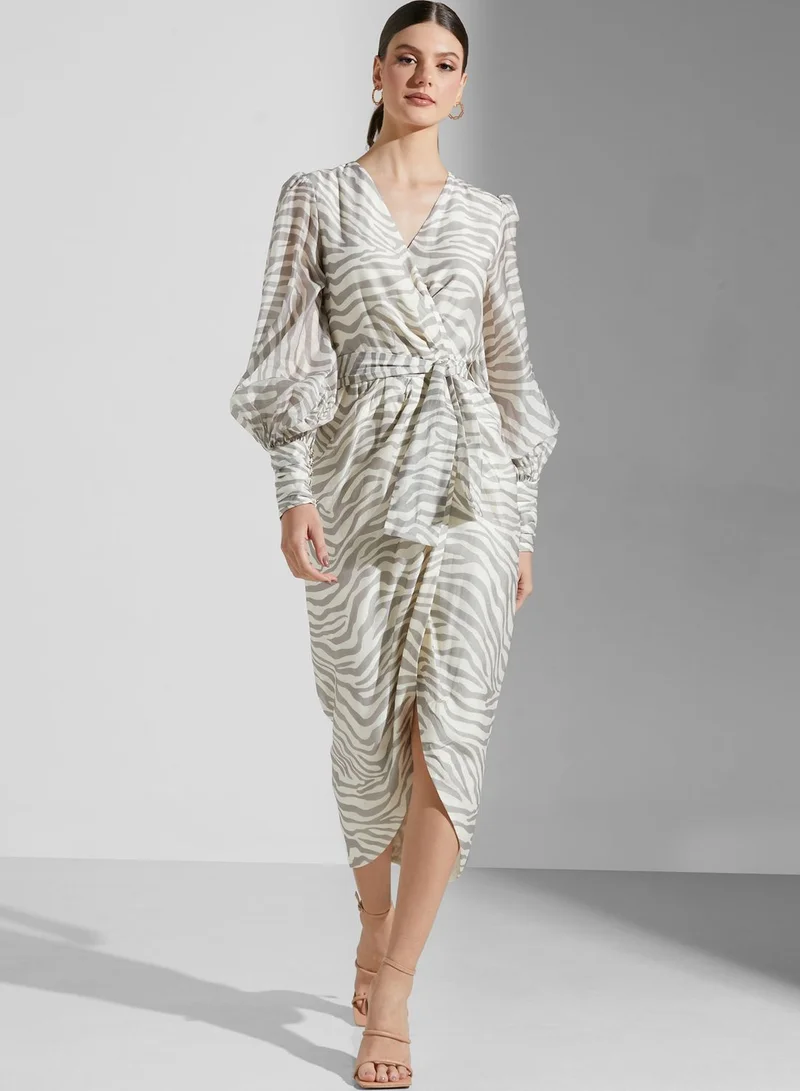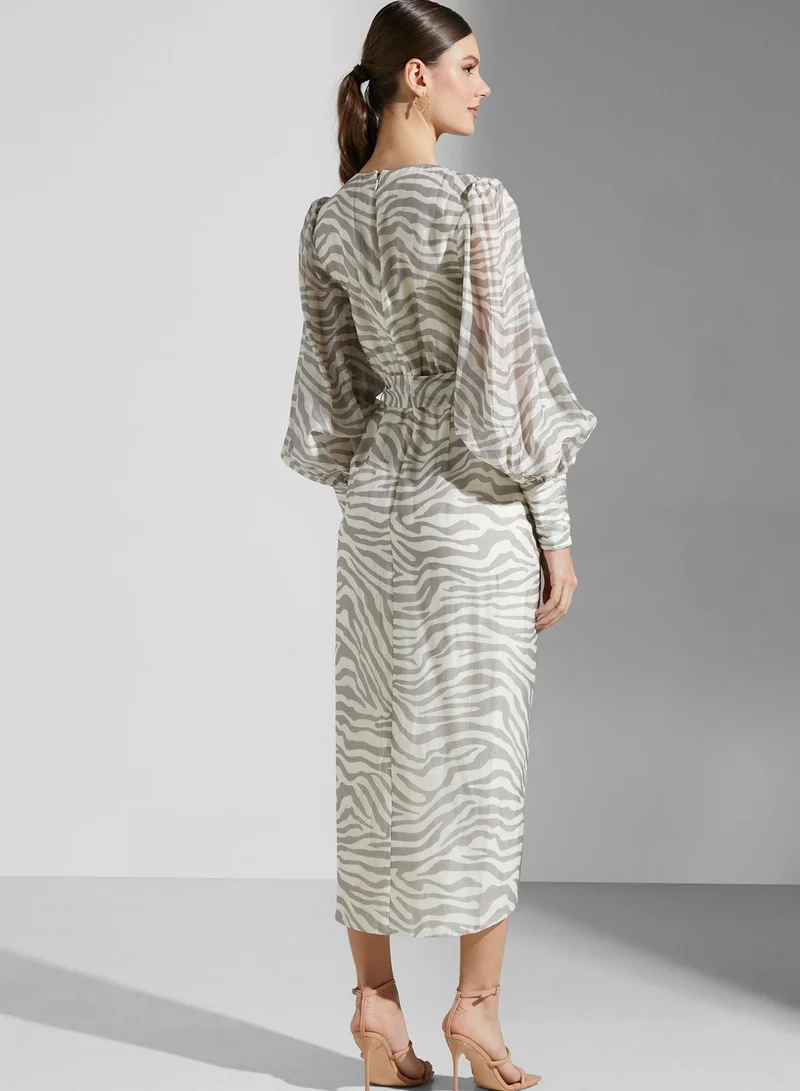 Keepsake Animal Print Balloon Sleeve Dress