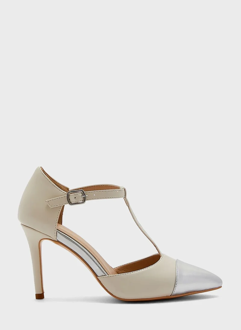 Metallic Toecap Ankle Strap Pointed Pump