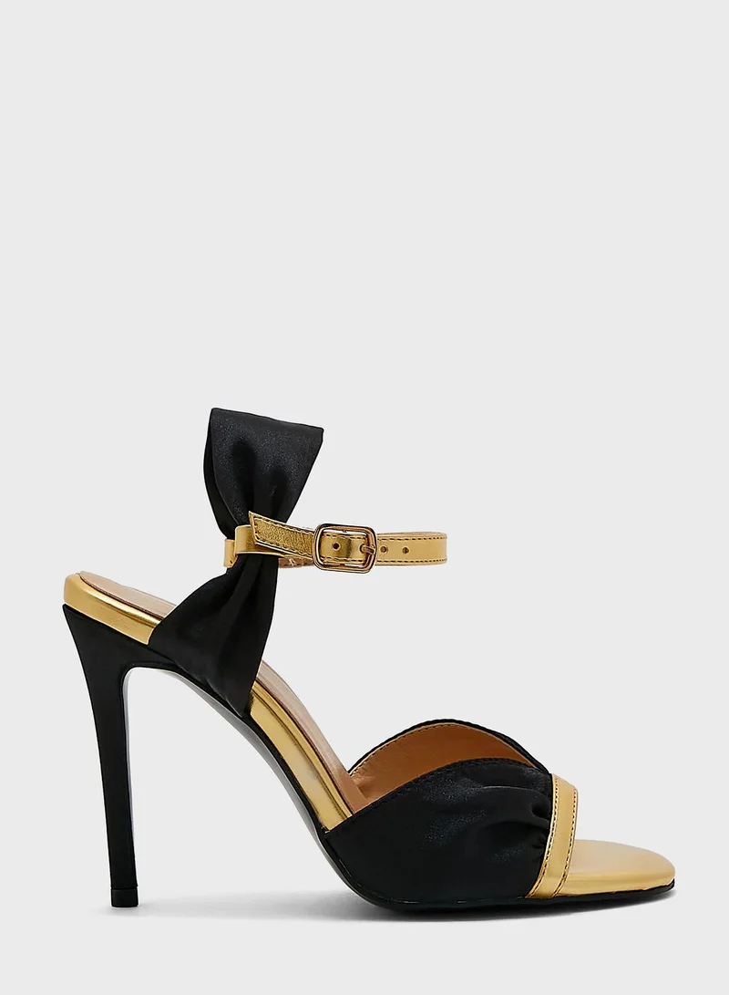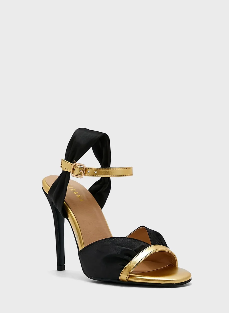 Khizana V Detail Metallic Trim Satin Ankle Strap Sandal