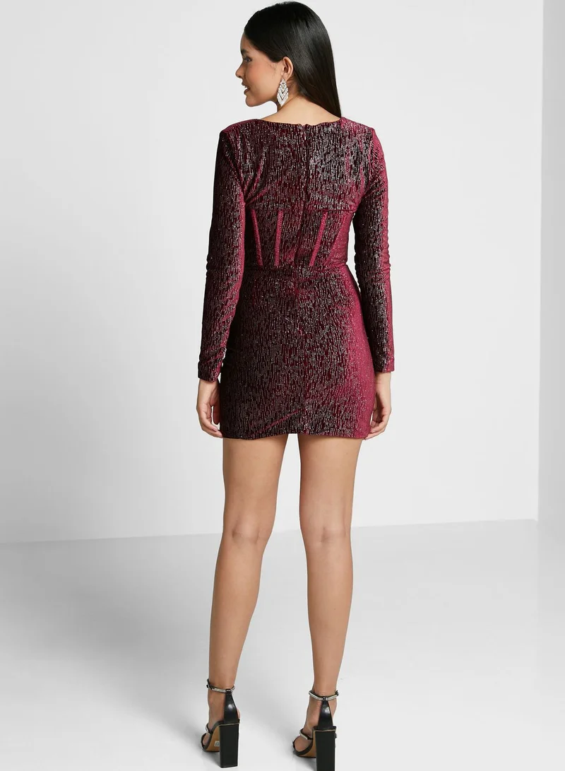 Give occasion dressing a new-age punch in this corset wrap dress. This outfit spells fierce finery.