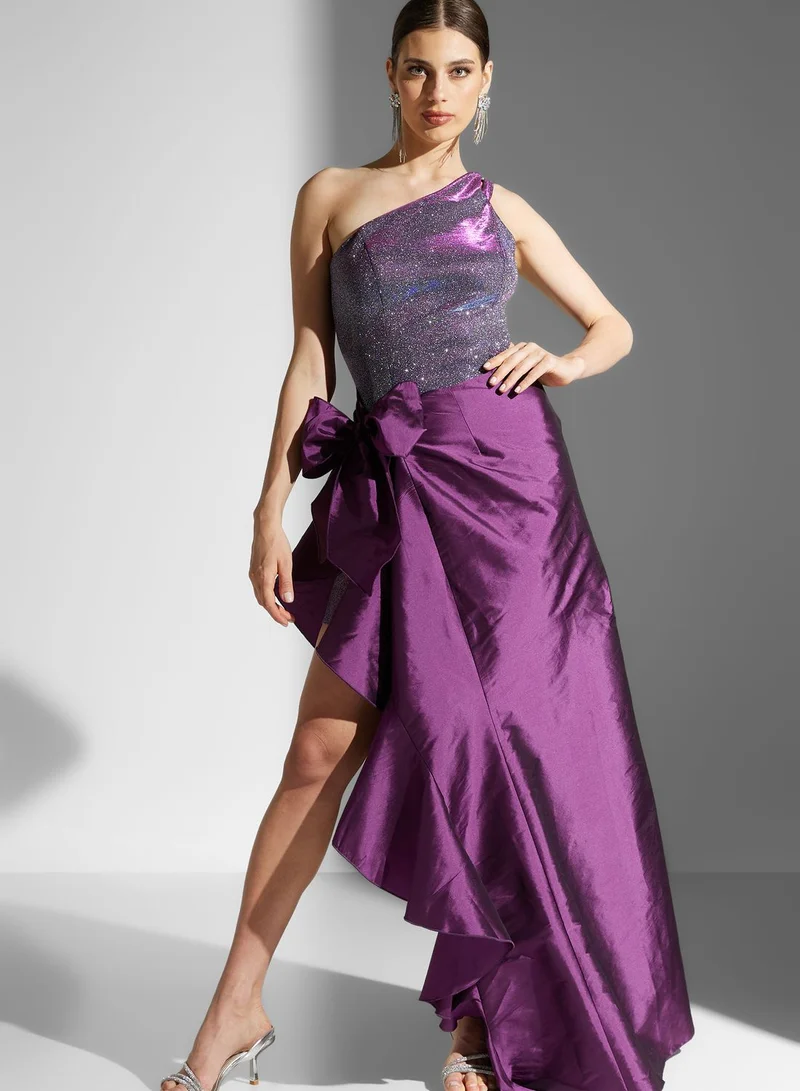 Namshi x Dana One Shoulder Shimmer Dress With Removable Skirt