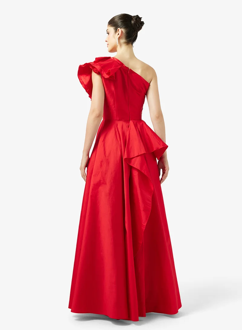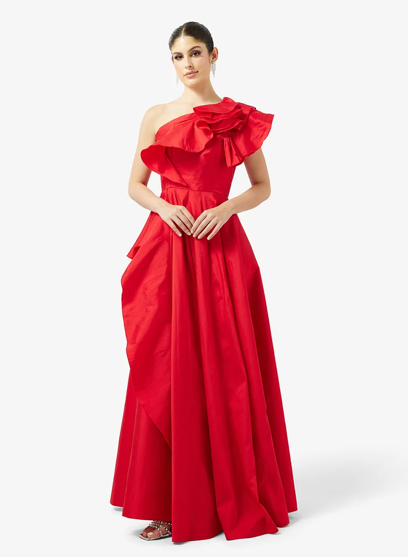 Namshi x One Shoulder Evening Gown With Exaggerated Ruffles