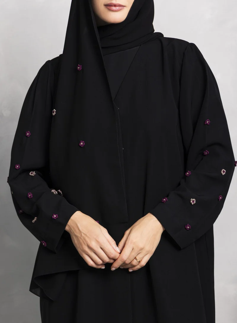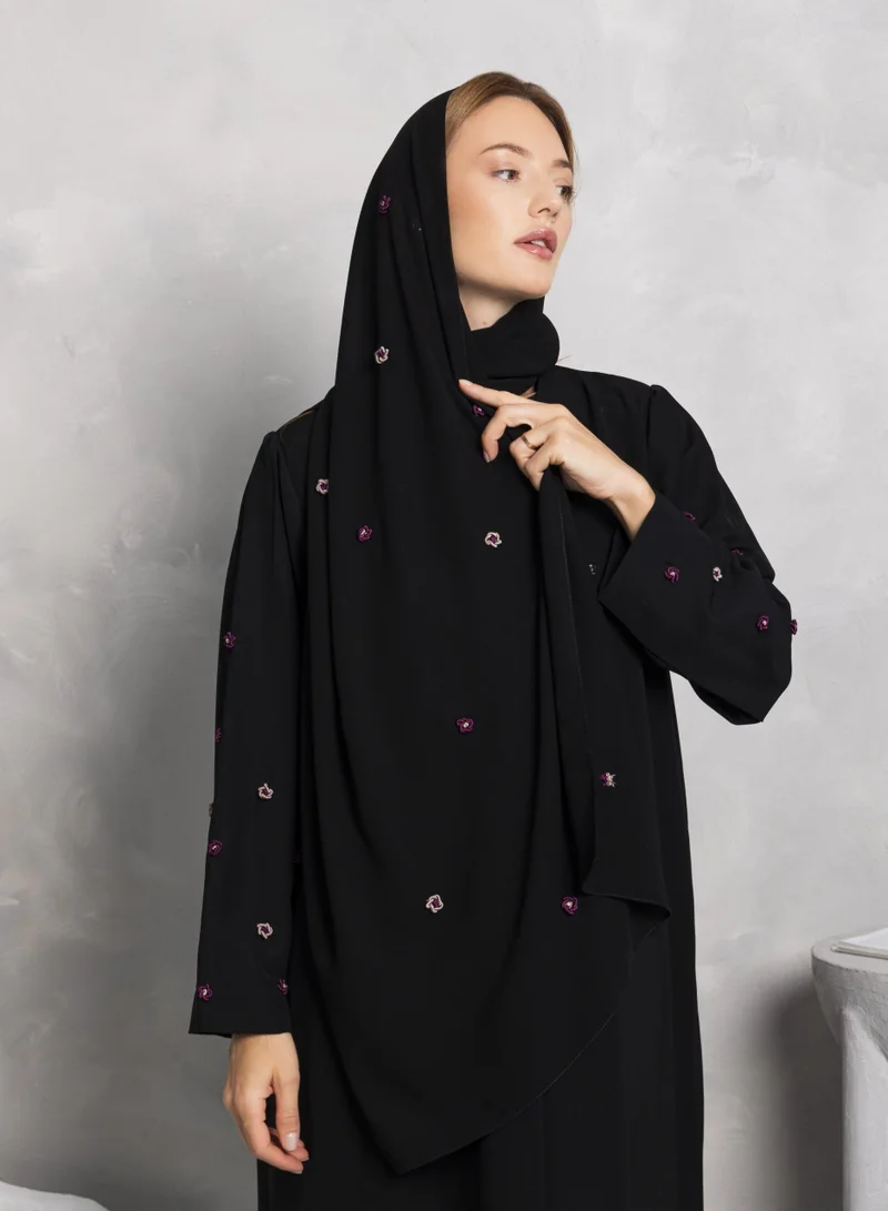 The Nikias Soft Crepe ensemble is a timeless blend of grace and sophistication, featuring a luxuriously smooth fabric that flows effortlessly. Elegant threadwork delicately embellishes the sleeves and sheila, adding a touch of refined artistry that enhances the overall look with subtle charm. Perfect for both formal occasions and graceful everyday wear, this design embodies quiet luxury. Sheila included