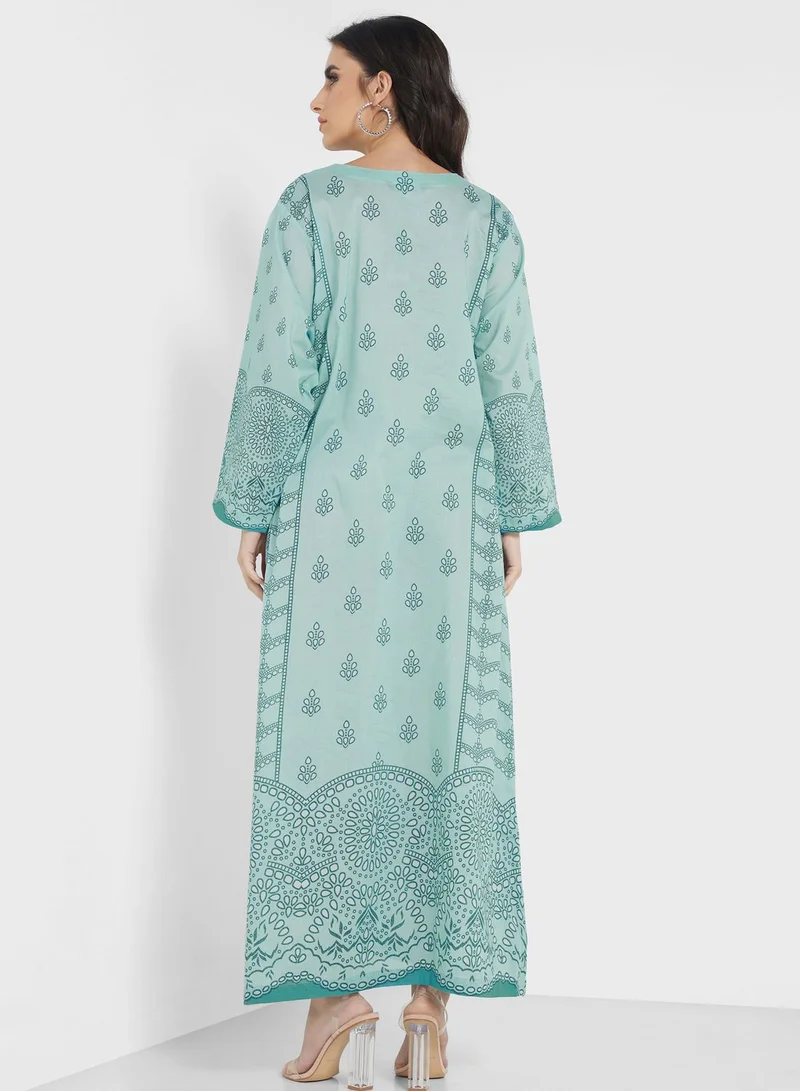Side Slit Printed Jalabiya