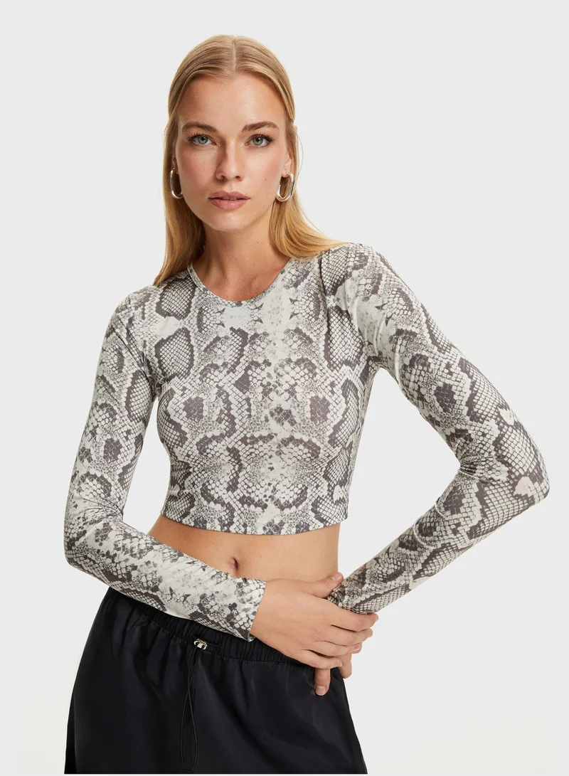 Printed Round Neck Top
