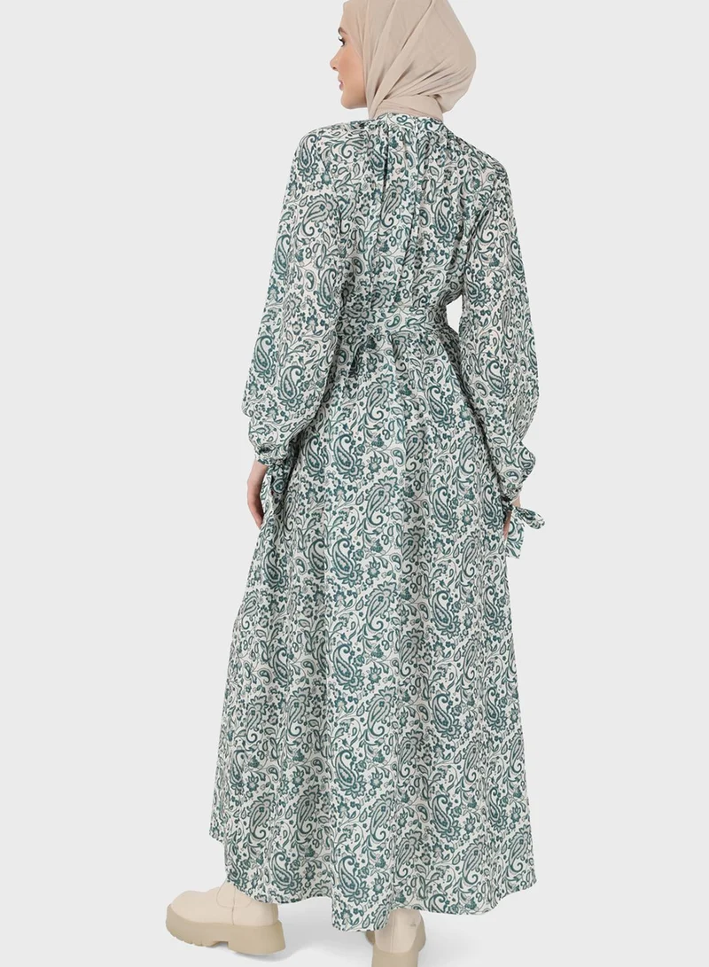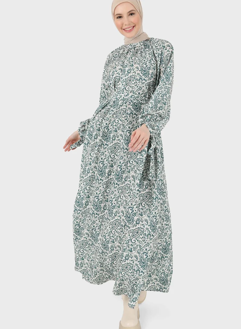 Refka by modanisa Belted Balloon Sleeve Dress