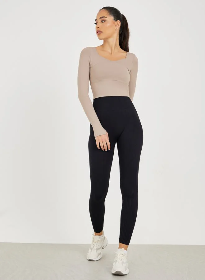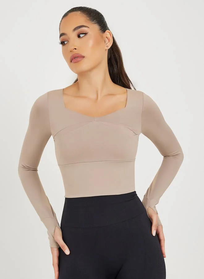 Styli Active Seam Detail Broad Neck Thumbhole Top