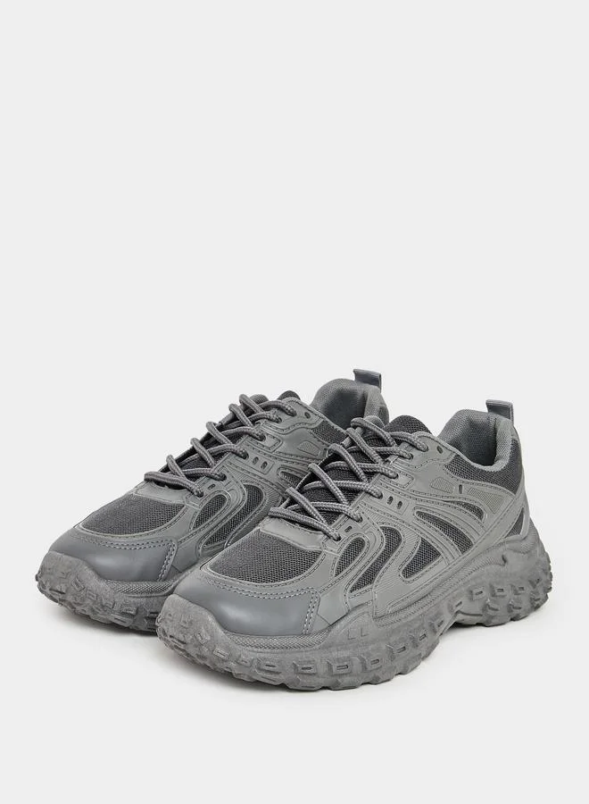 Styli Active Textured Gripped Sole Lace Up Sneakers