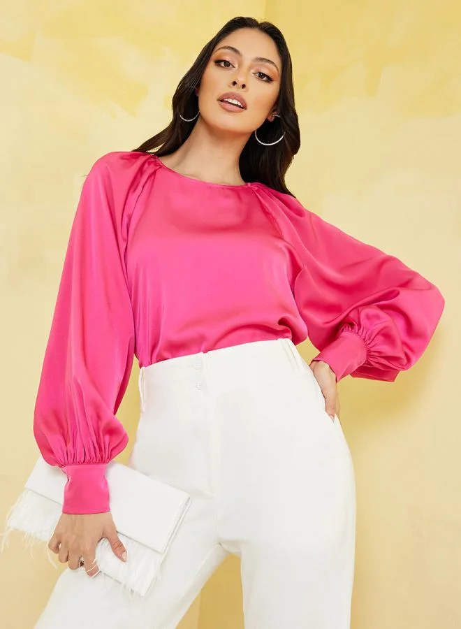 Styli Balloon Sleeves Solid Boxy Blouse