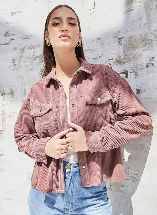 Styli Boxy Corduroy Jacket with Flap Pocket
