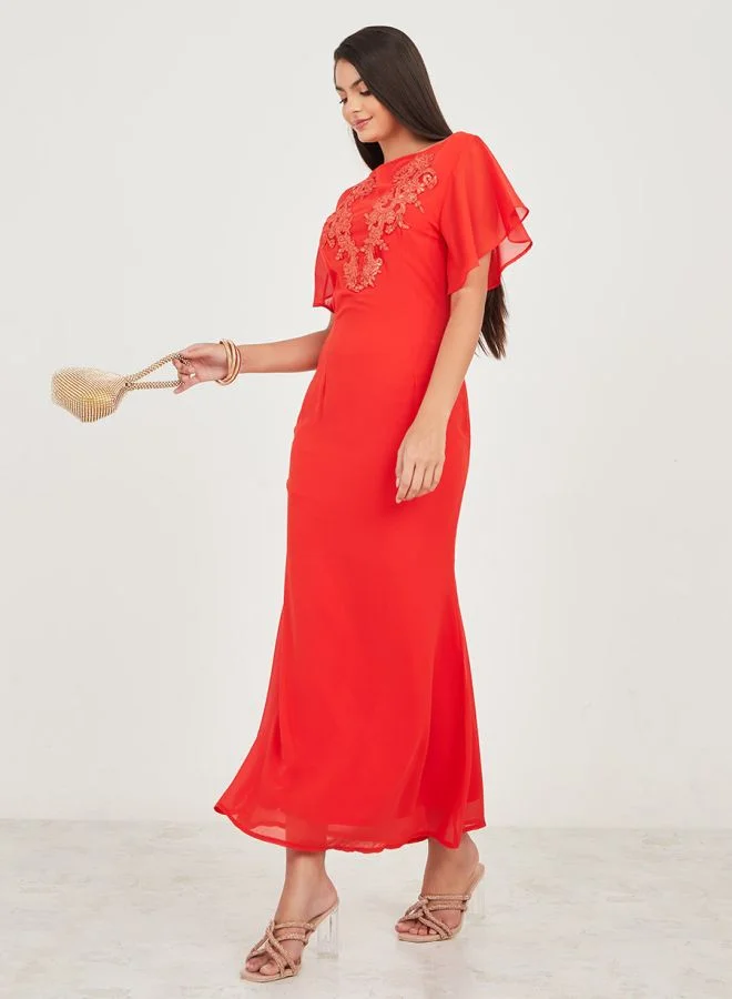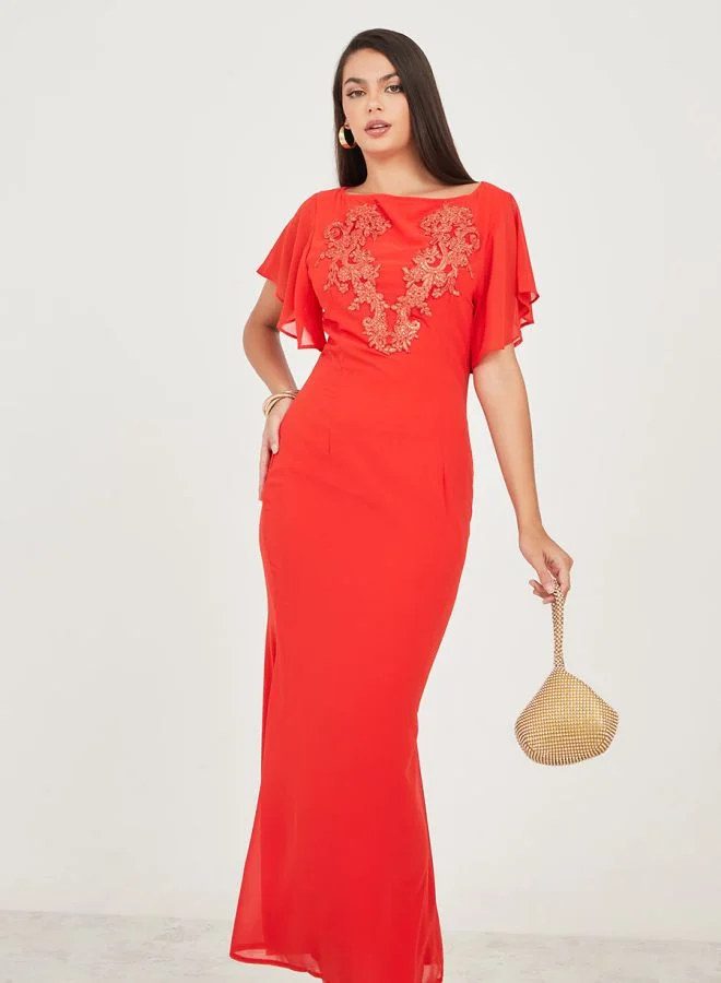 Styli Embroidered Sequin Detail Sheath Maxi Dress