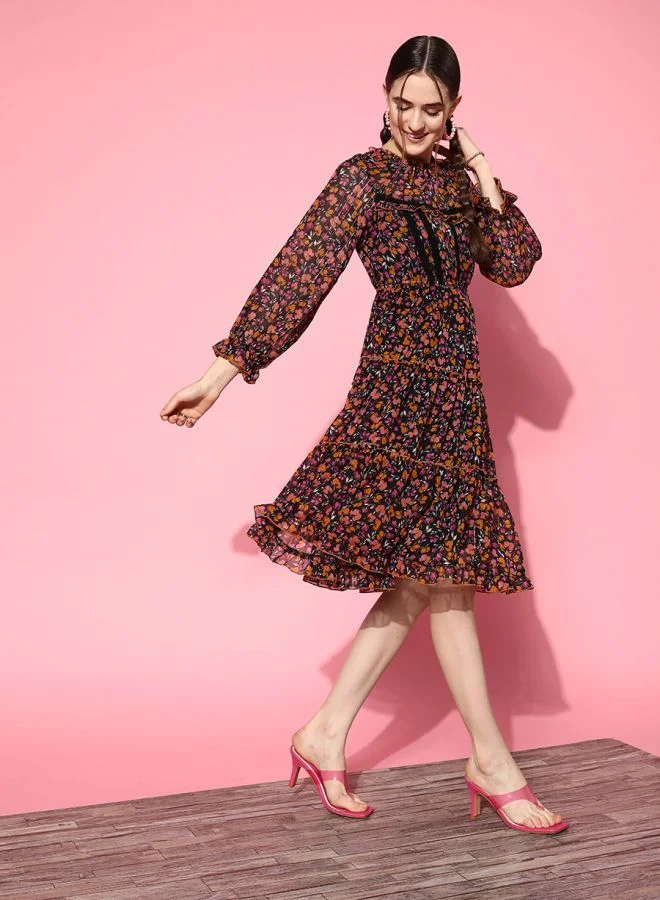 Styli Floral Chiffon A-Line Knee Length Dress