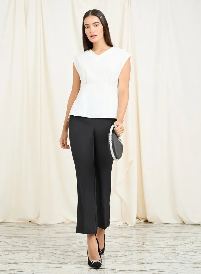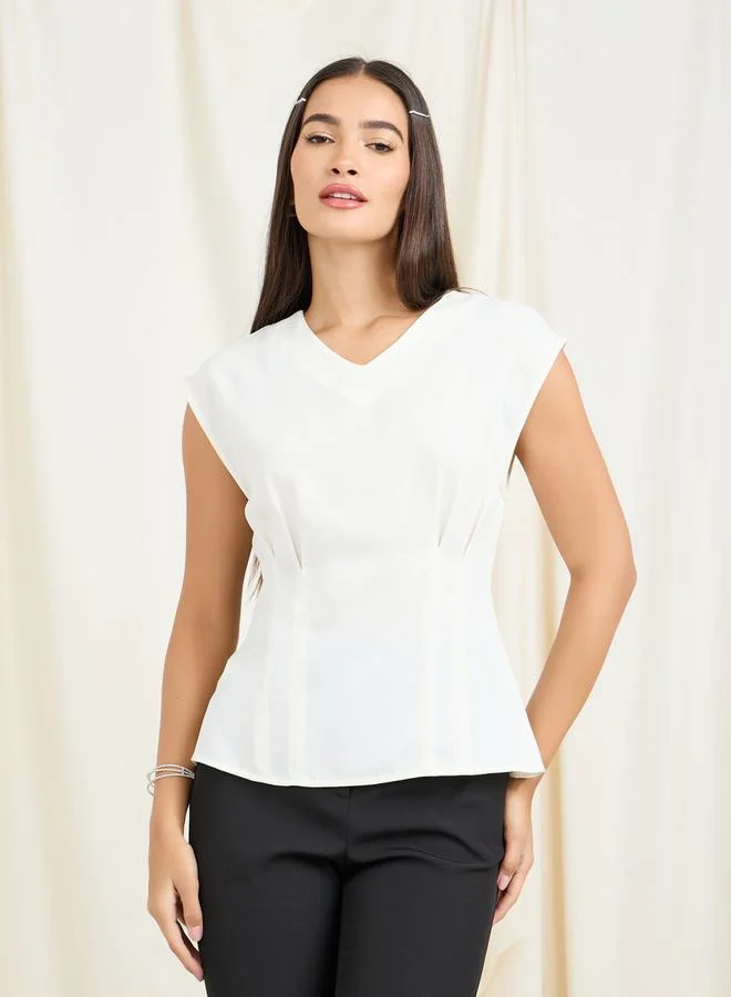 Styli Fold Pleat Detail V Neck Blouse