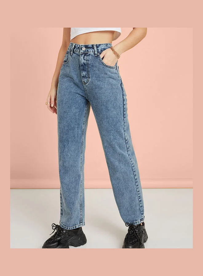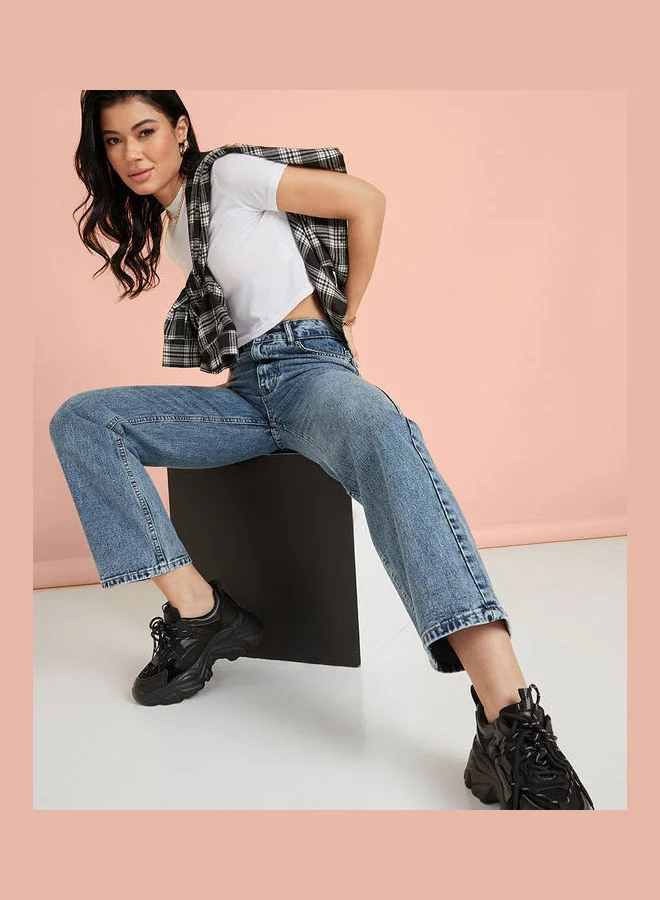 Styli High Rise Wide Leg Jeans with Belt Loops