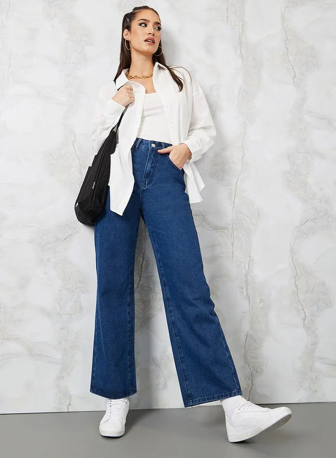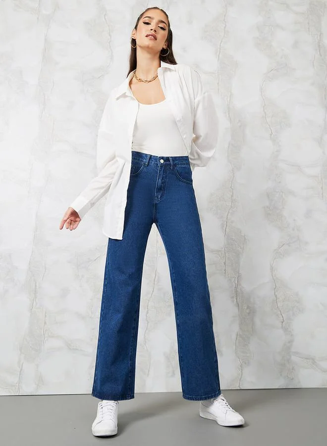 Styli High Rise Wide Leg Jeans with Belt Loops