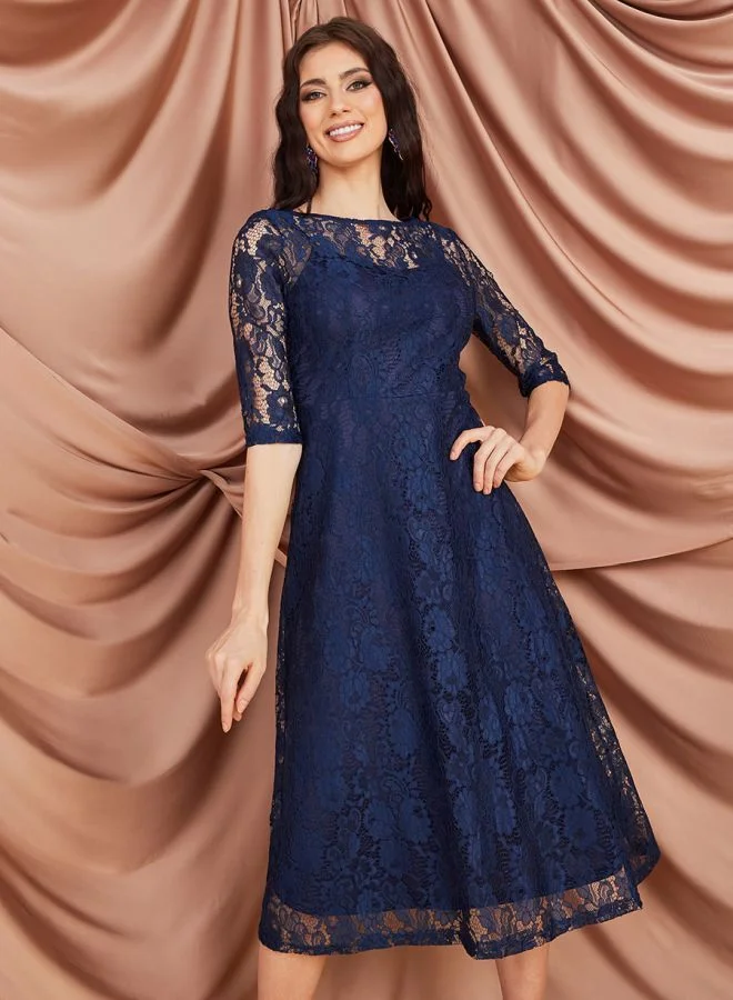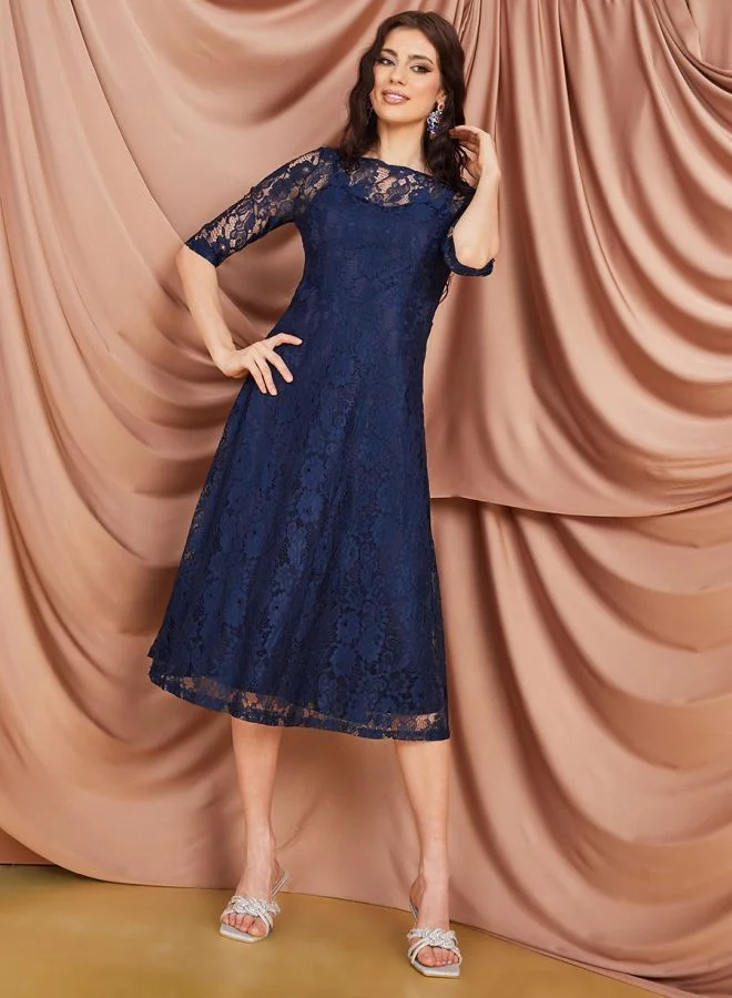 Styli Lace Detail A-Line Midi Dress