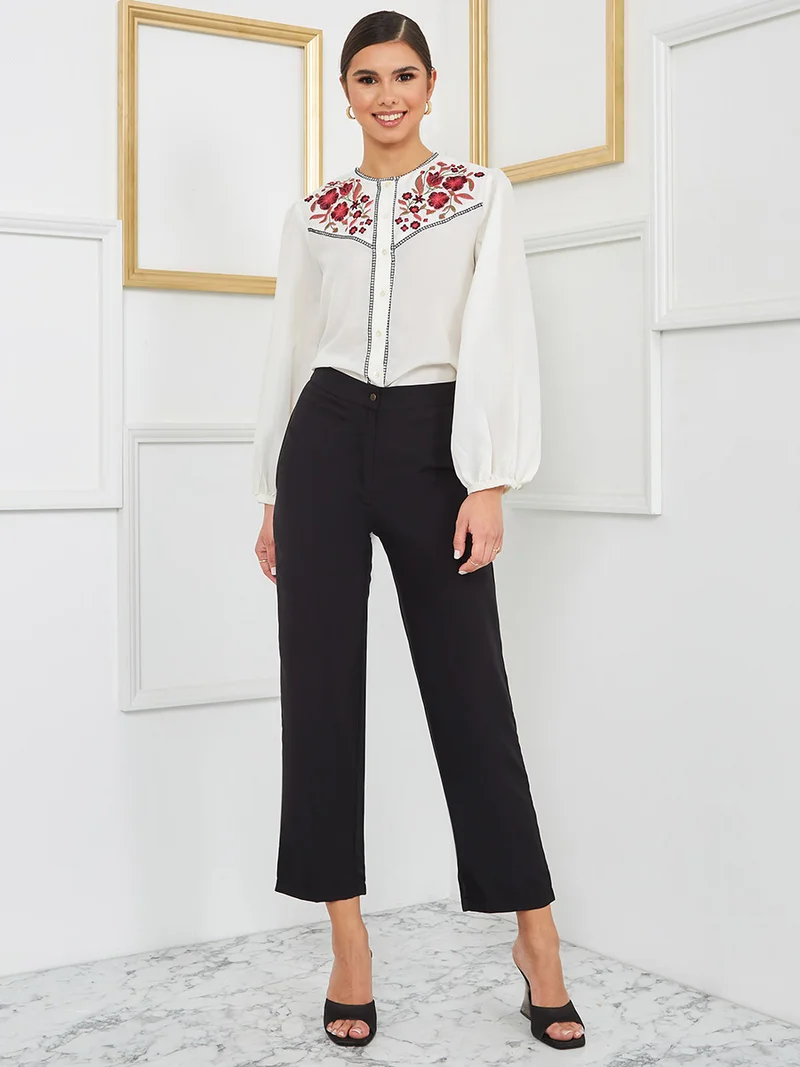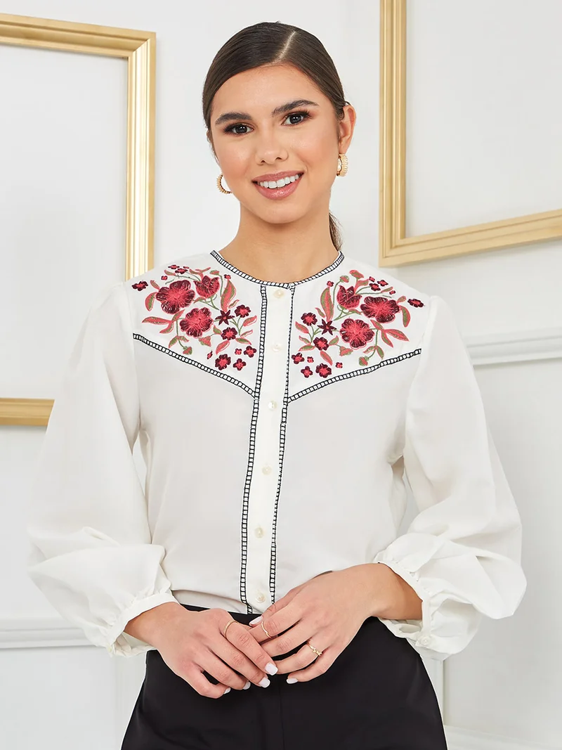 Styli Long Sleeves Floral Embroidered High Neck Blouse
