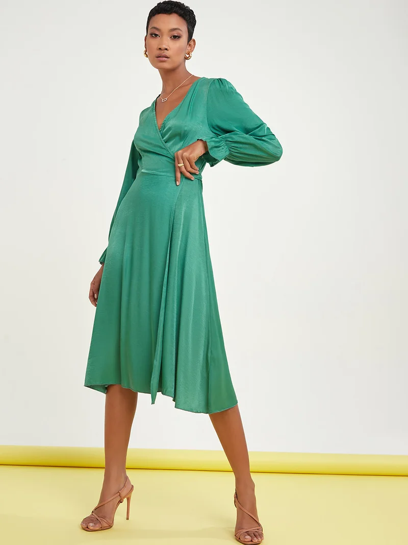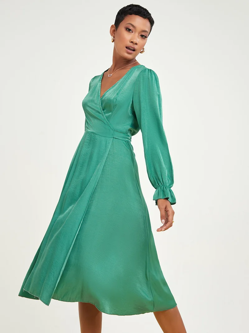 Styli Long Sleeves Wrap Around Midi Dress