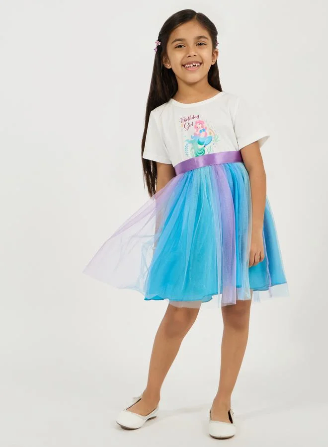 Mermaid Print Mesh Insert Dress