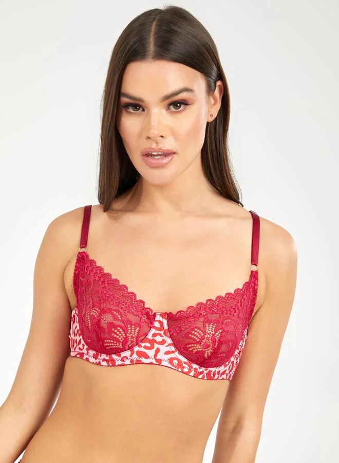 Styli Non Padded Wired All Lace Animal Print Plunge Bra and Thong Set