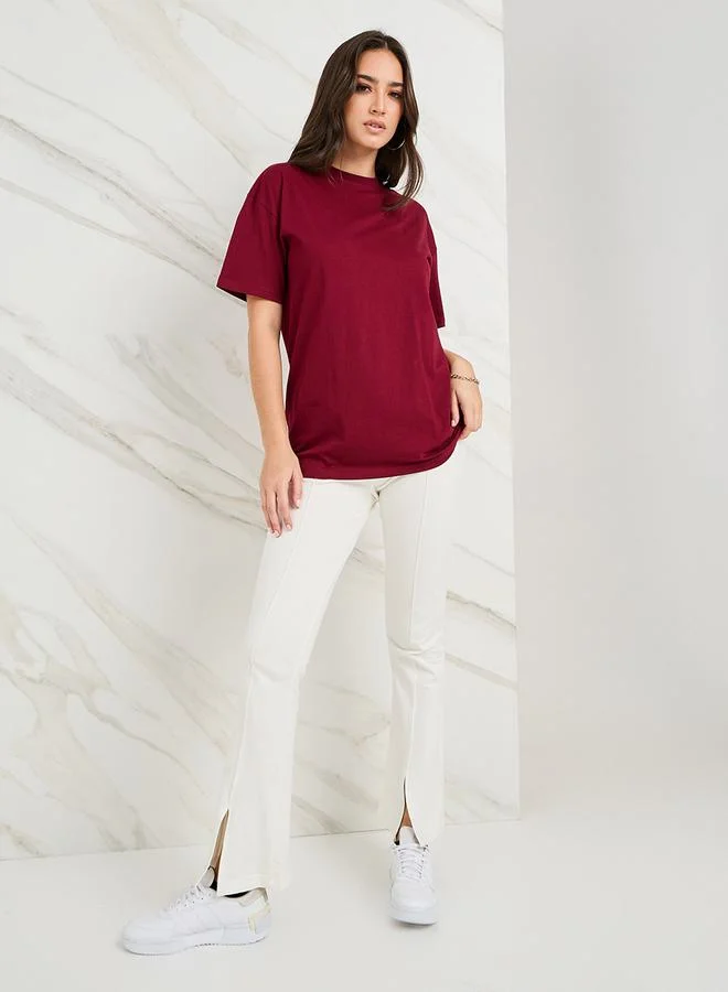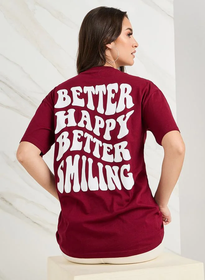 Styli Oversized Dropped Shoulder Slogan T-Shirt