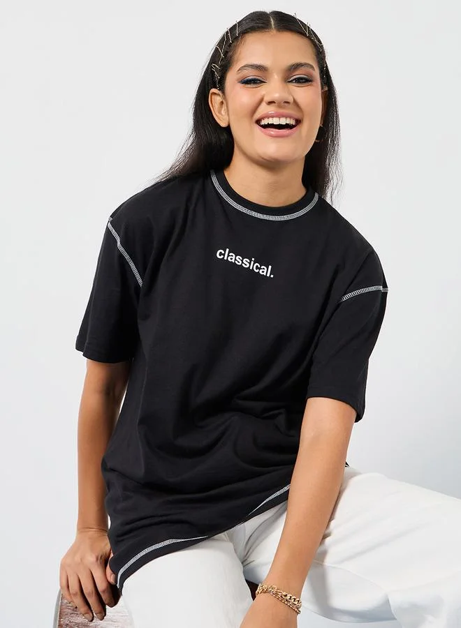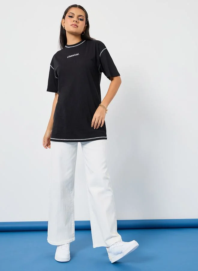 Styli Oversized Stitch Detail Drop Shoulder T-shirt