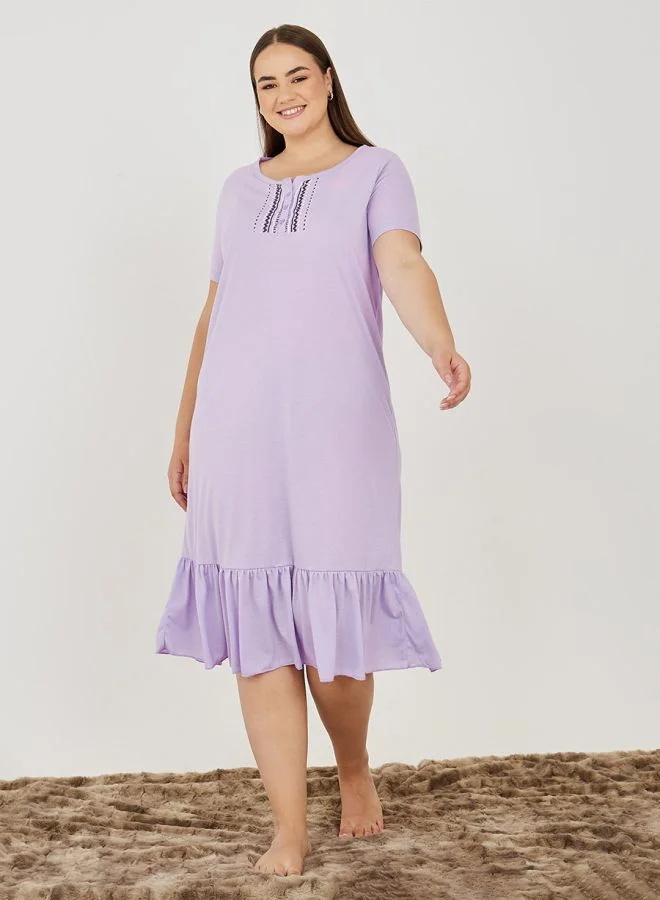 Styli Plus Henley Neck Ruffle Hem Sleep T-Shirt Dress