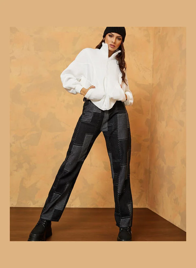 Styli Regular Length Funnel Neck Oversized Fleece Jacket