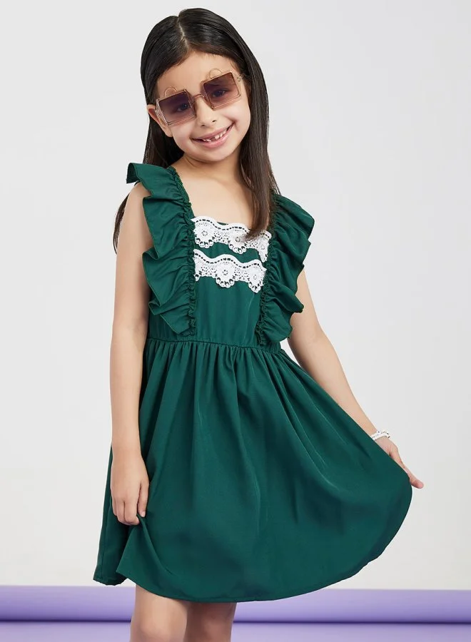 Styli Ruffle Sleeve Lace Insert Casual Dress