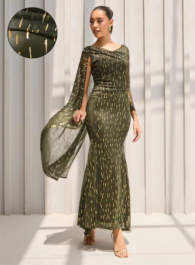 Styli Self Design One Shoulder Cape Maxi Dress
