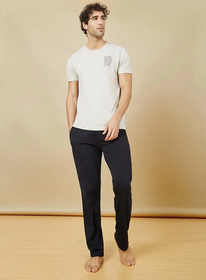 Styli Slogan Print T-Shirt & Solid Pyjama Set