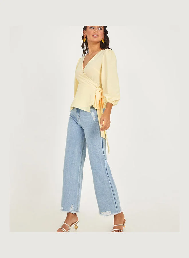 Styli Solid Long Sleeves Wrap Top