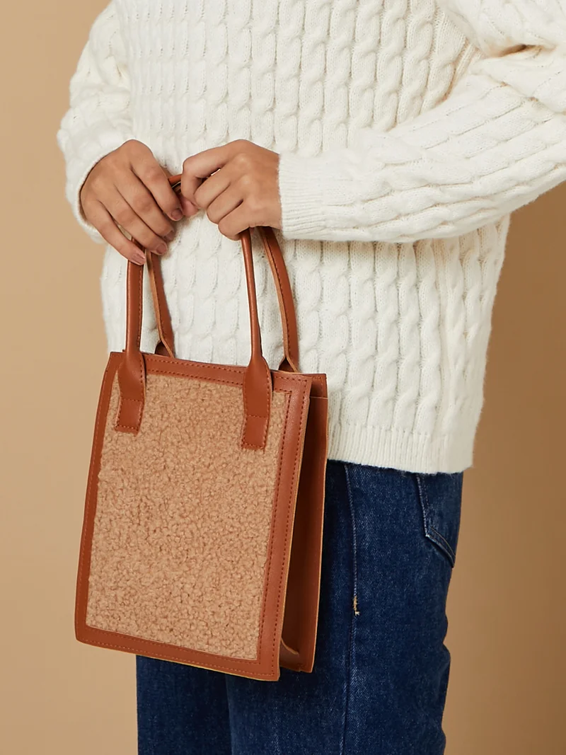 Teddy Faux Fur Handbag with Detachable Strap