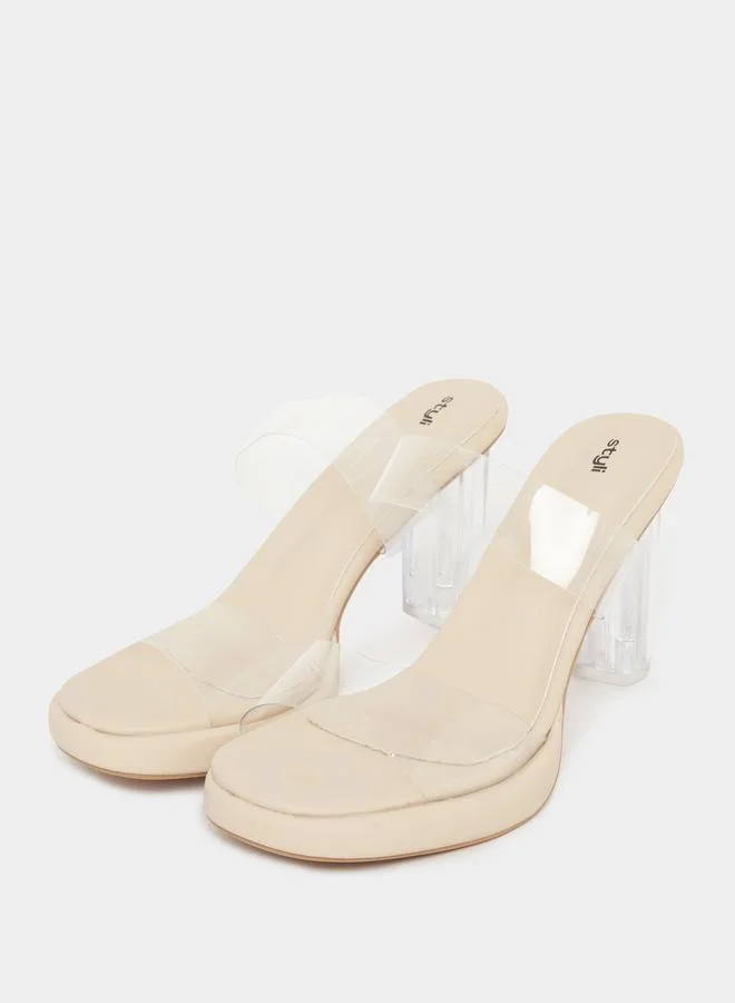 Styli Transparent Strap Square Toe Sandals