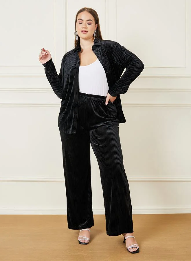 Styli Velour Textured Shirt & Wide Leg Pants Co-Ords