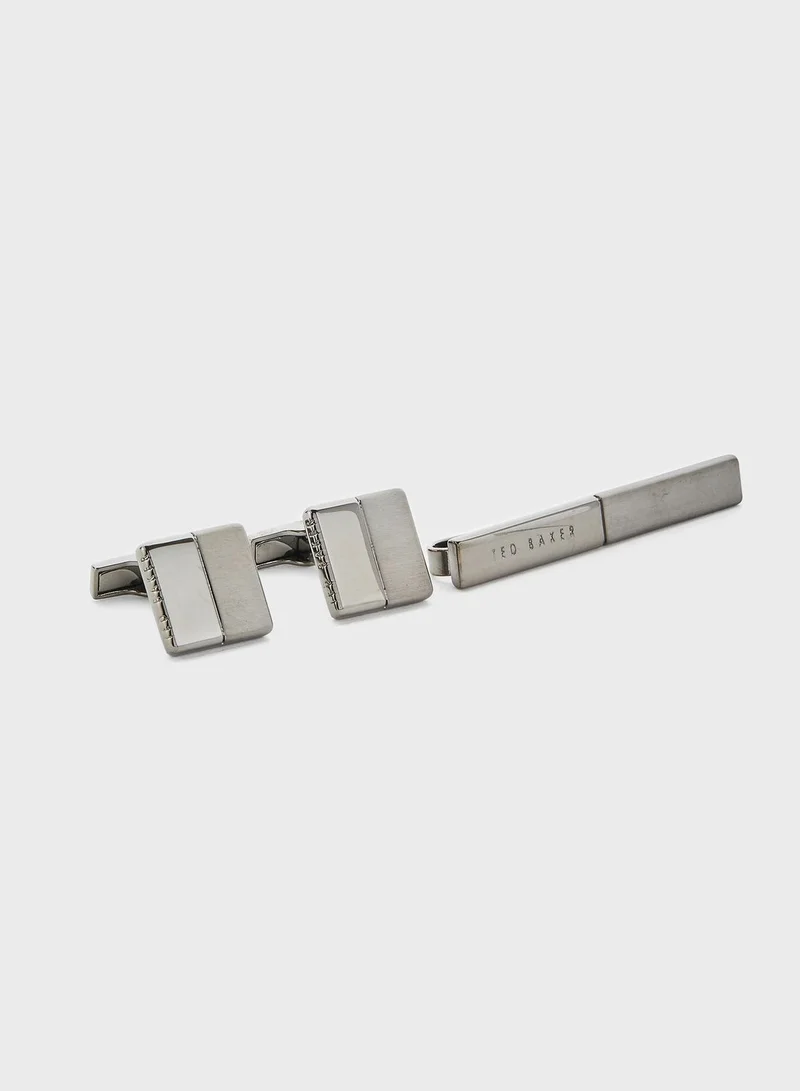 Complete formal looks in style with our JETI cufflinks and tie bar set. Made in brass, this dapper set come in a Ted Baker-branded small box, a smart investment for your suiting ensembles.