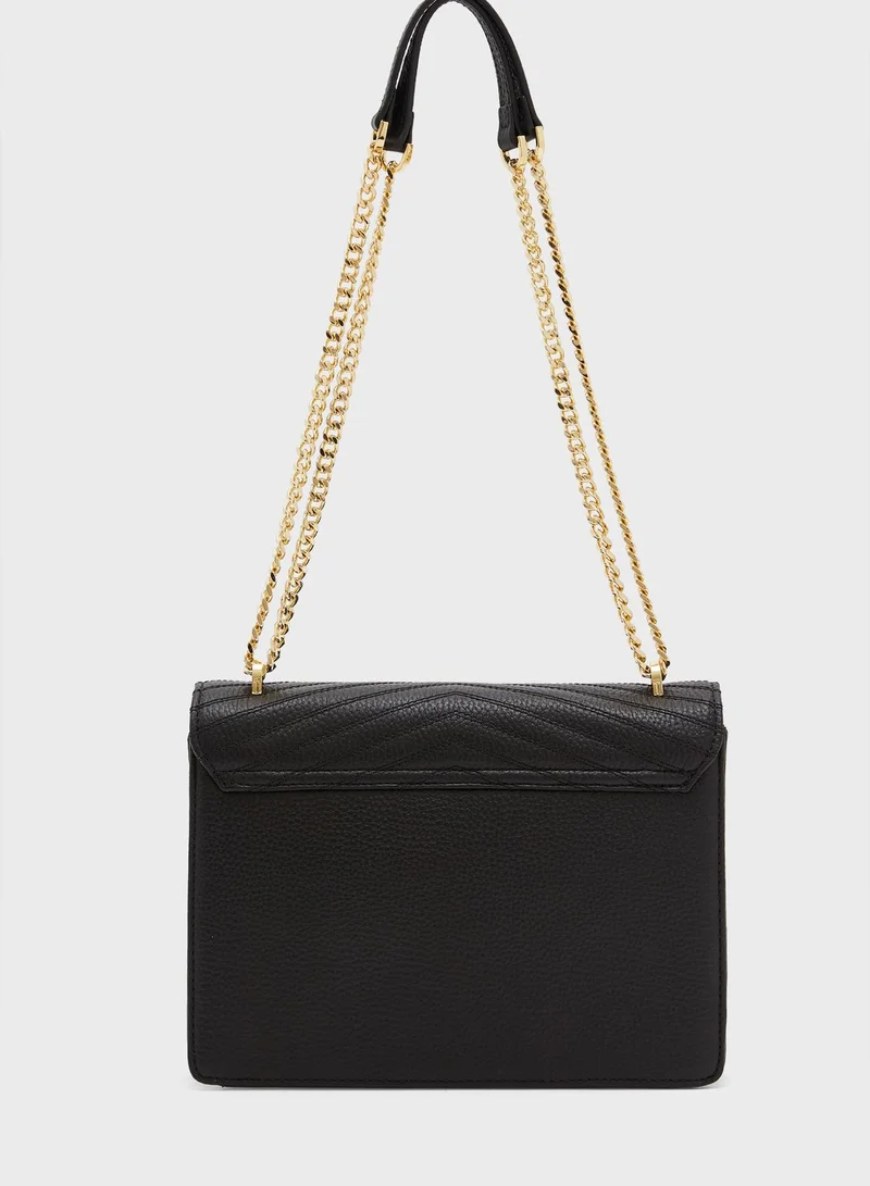 • Linked metal crossbody strap