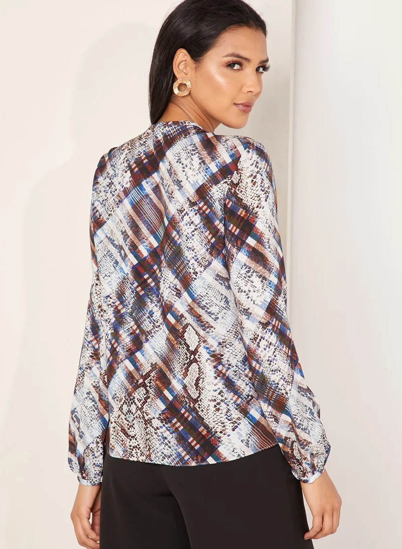 Lyzaa Tie Neck Printed Top